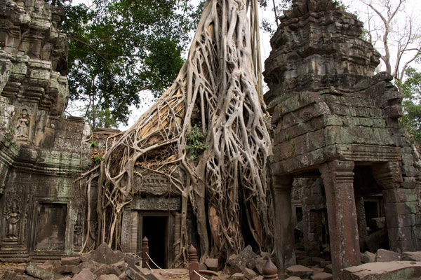 Ta Prohm is undoubtedly the most atmospheric and photogenic ruin at Angkor, with trees growing out of the ruins. Here you can still experience an India Jones moment and feel like an early explorer. If Angkor Wat and other temples are a testimony to the genius of the ancient Khmers, Ta Prohm equally reminds us of the awesome power of the jungle.